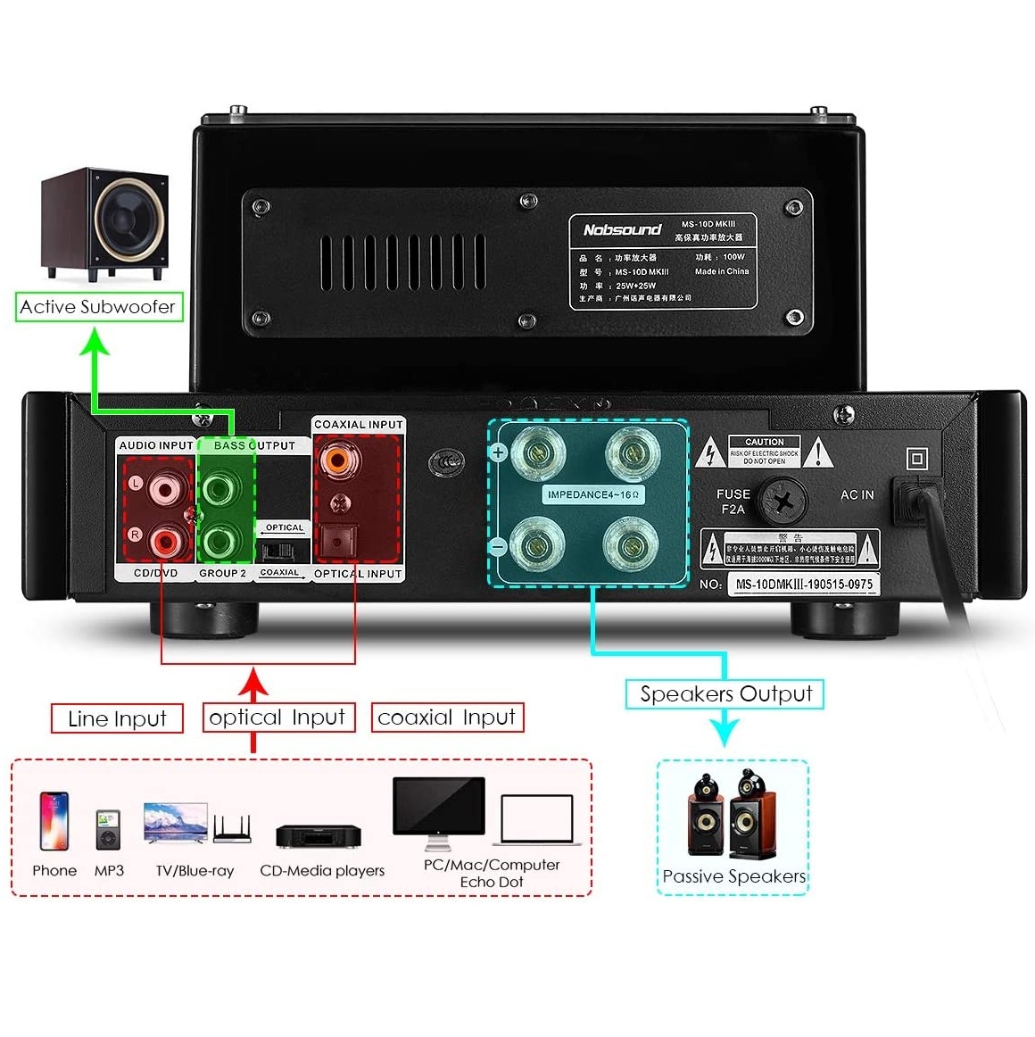 Thuộc dòng sản phẩm Nobsound MS10D đã rất thành công, hãng Nobsound ra mắt bản nâng cấp Nobsound ms10d MKII và MKIII; Với Bluetooth/USB/headphone HIFI Stereo AMP khuếch đại âm thanh, bluetooth không dây (bluetooth
