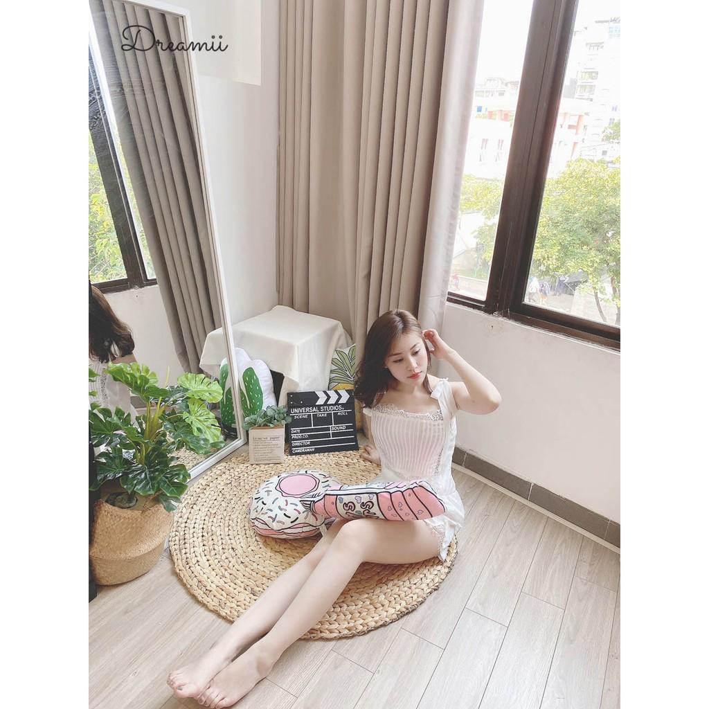 Bên cạnh việc sử dụng chất liệu lụa satin, còn điểm xuyết chi tiết thêu ren trong hầu hết các mẫu thiết kế, để giúp người mặc khoe trọn vẹn đường nét quyến rũ tinh tế mà không quá phô trương.