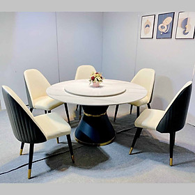 Thông tin bàn tròn xoay 2 mặt đá: - Chất liệu: Đá phiến ceramic - Bàn tròn xoay mặt đá với thiết kế hiện đại, tôn vinh không gian phòng ăn gia đình sang trọng,