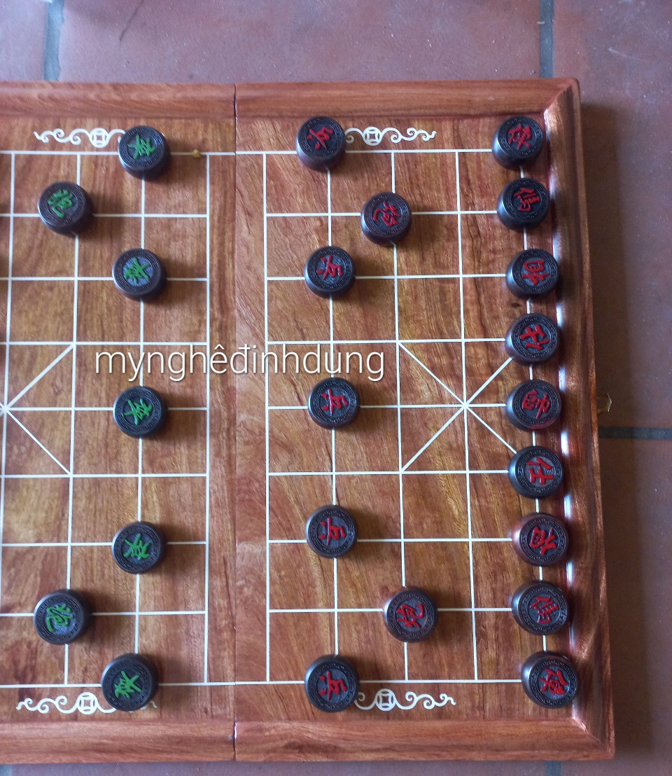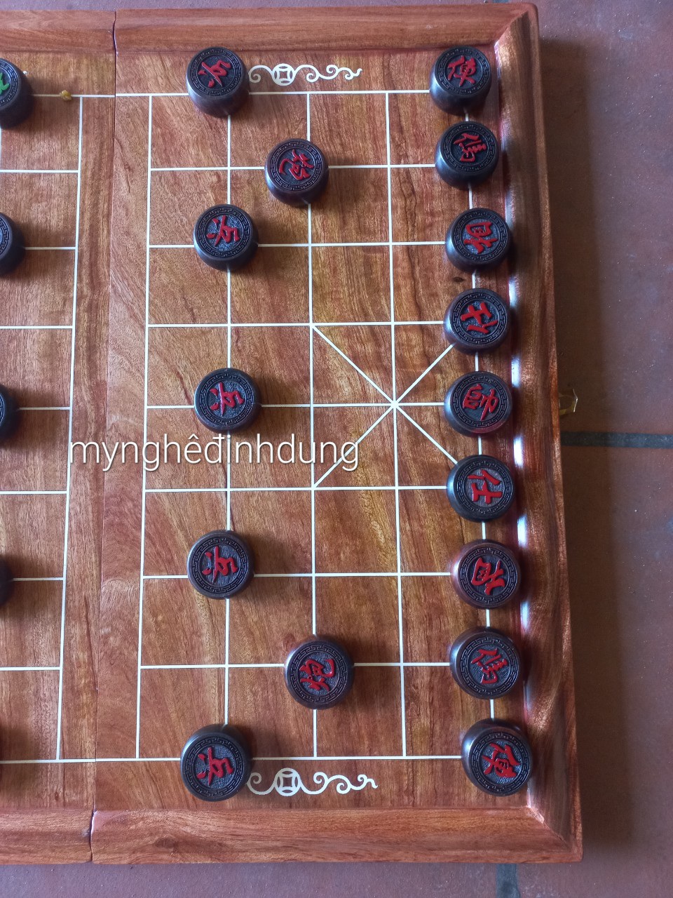 _ Bộ bàn cờ tướng +quân cờ được làm bằng chất liệu gỗ trắc đỏ đen tự nhiên 100% _ Kt bàn cờ 52×50 dầy 3cm _ Kt quân cờ 4.0×1.5cm _ Bộ bàn cờ