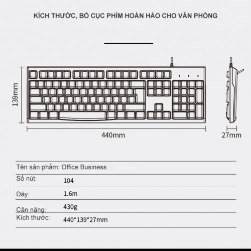 Thông số kỹ thuật : Kích thước : Bàn phím : 285x133x20 mm, Chuột : 113x58x20 mm Chất liệu : Nhựa ABS siêu bền Màu sắc :