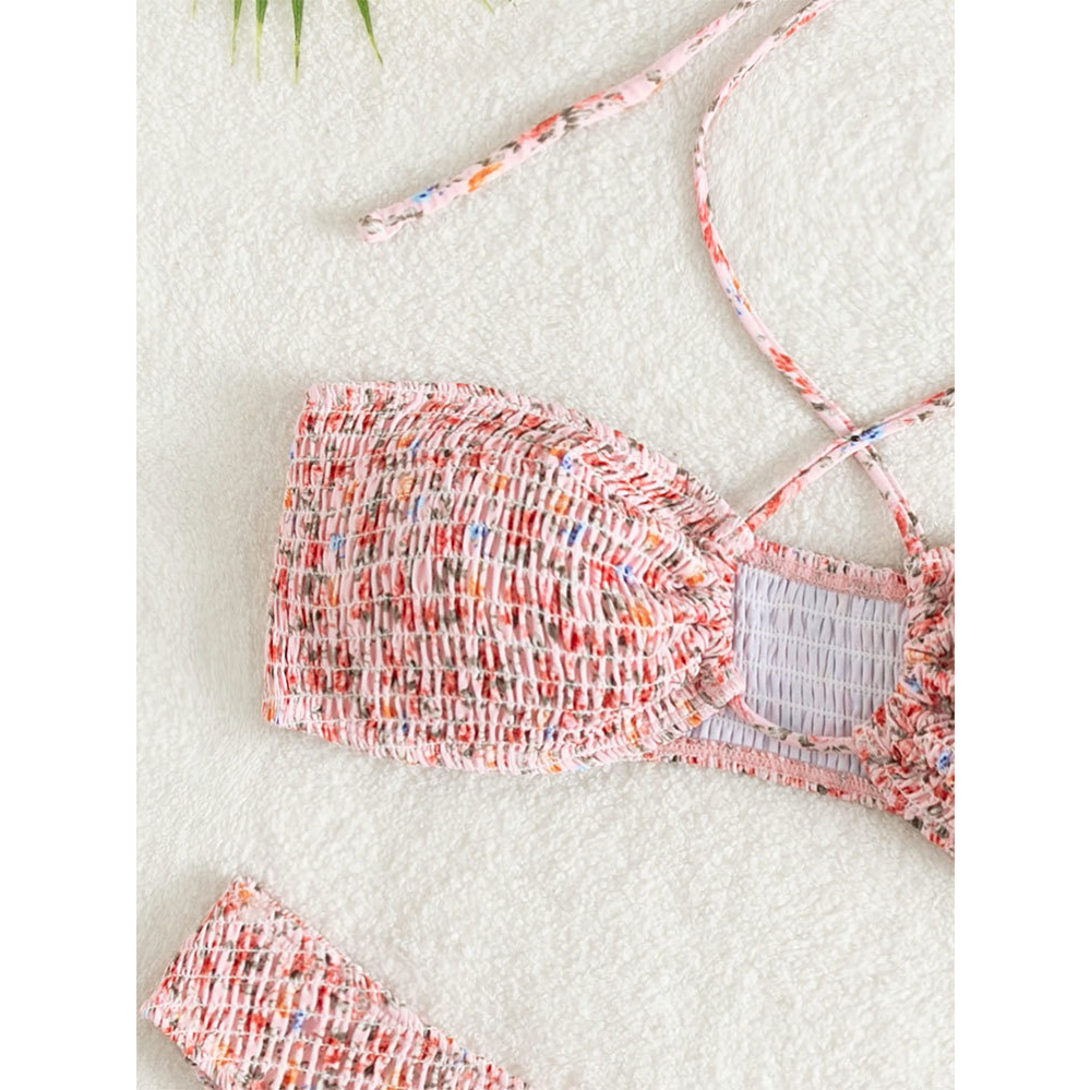 Bikini, đồ bơi nữ đi biển set 3 món hai mảnh họa tiết hoa kèm khăn quấn