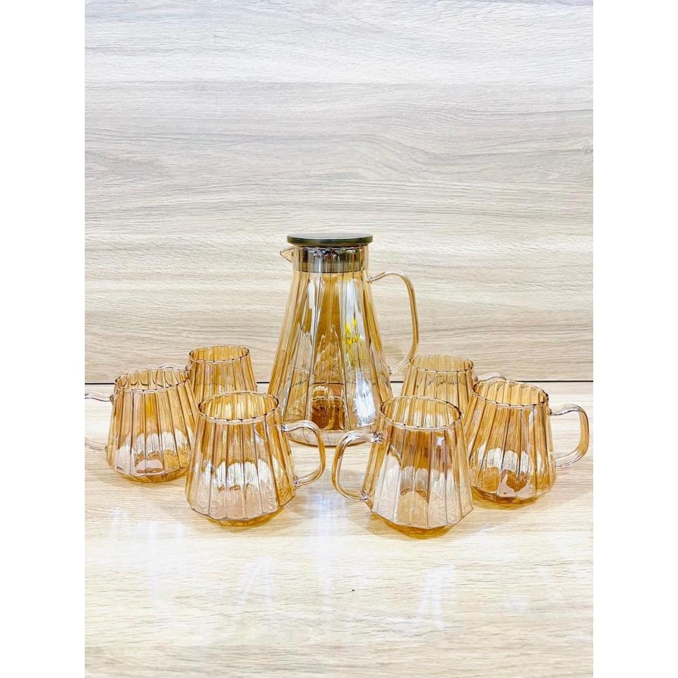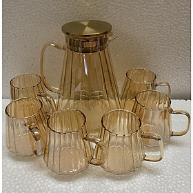 ✨BỘ BÌNH ĐỰNG NƯỚC UỐNG KÈM 6 CỐC THỦY TINH MÀU VÀNG GOLD CHỊU NHIỆT HÀNG CAO CẤP