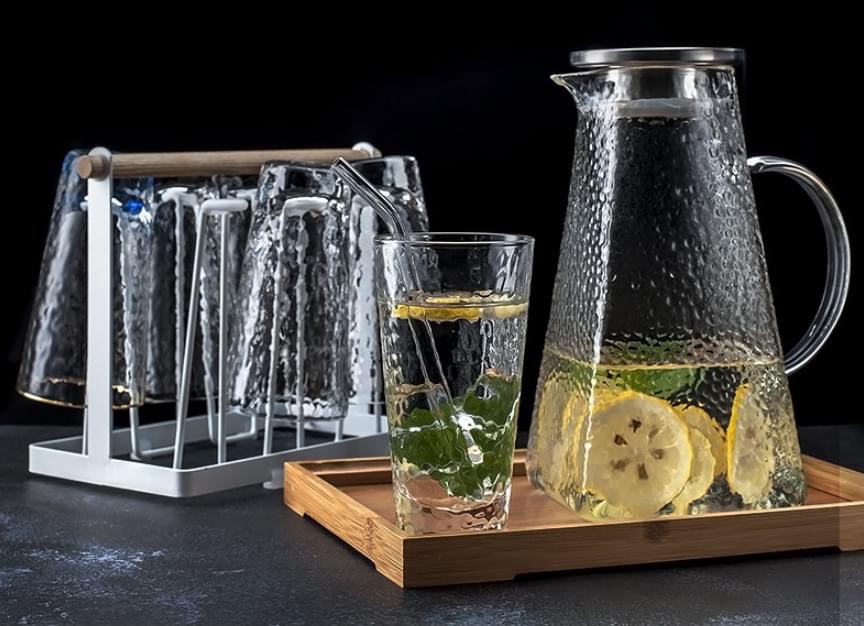 Bộ khay bình nước 6 cốc thuỷ tinh cao cấp