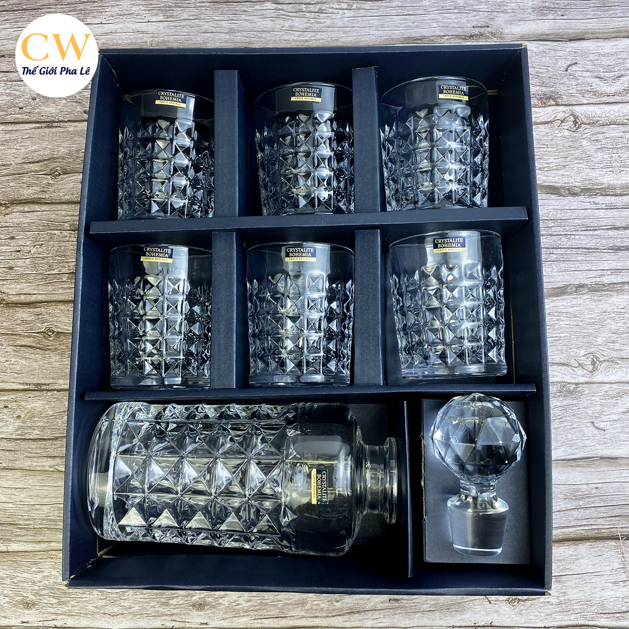 Bộ Bình Ly Rượu Mạnh Pha Lê Tiệp Bohemia Diamond (1 bình 6 cốc) sang trọng và đẳng cấp.