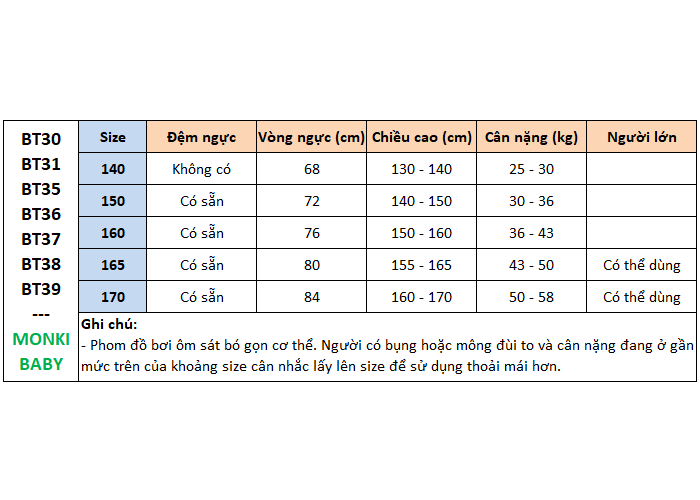 - Chất thun bơi đẹp, dày dặn, co giãn tốt, ôm gọn tôn dáng bé. Bảng size tham khảo: ẢNH CHI TIẾT SẢN PHẨM