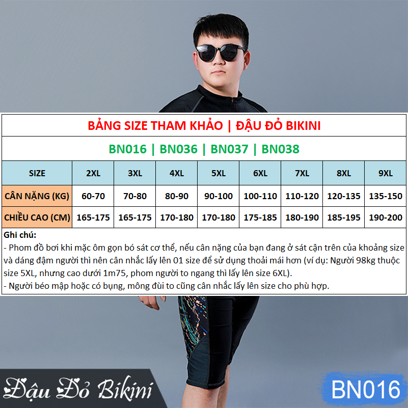 Bơi lội tự tin thỏa thích cùng bộ bơi nam tính, phom big size rộng rãi BN060 Bảng size tham khảo: Giới thiệu sản phẩm: - Áo thun bơi cộc tay che nắng tốt mà