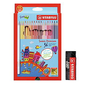 ✨Bộ bút chì màu Swans 36 màu - Hộp 36 màu + Tuyển tập tô màu SVCB (CLP1868-36B)