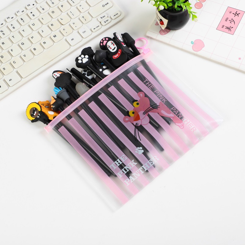 Bút bi nước mực gel màu đen hình thú dễ thương, kèm túi zip sét 20 chiếc | Trùm đồ gia dụng