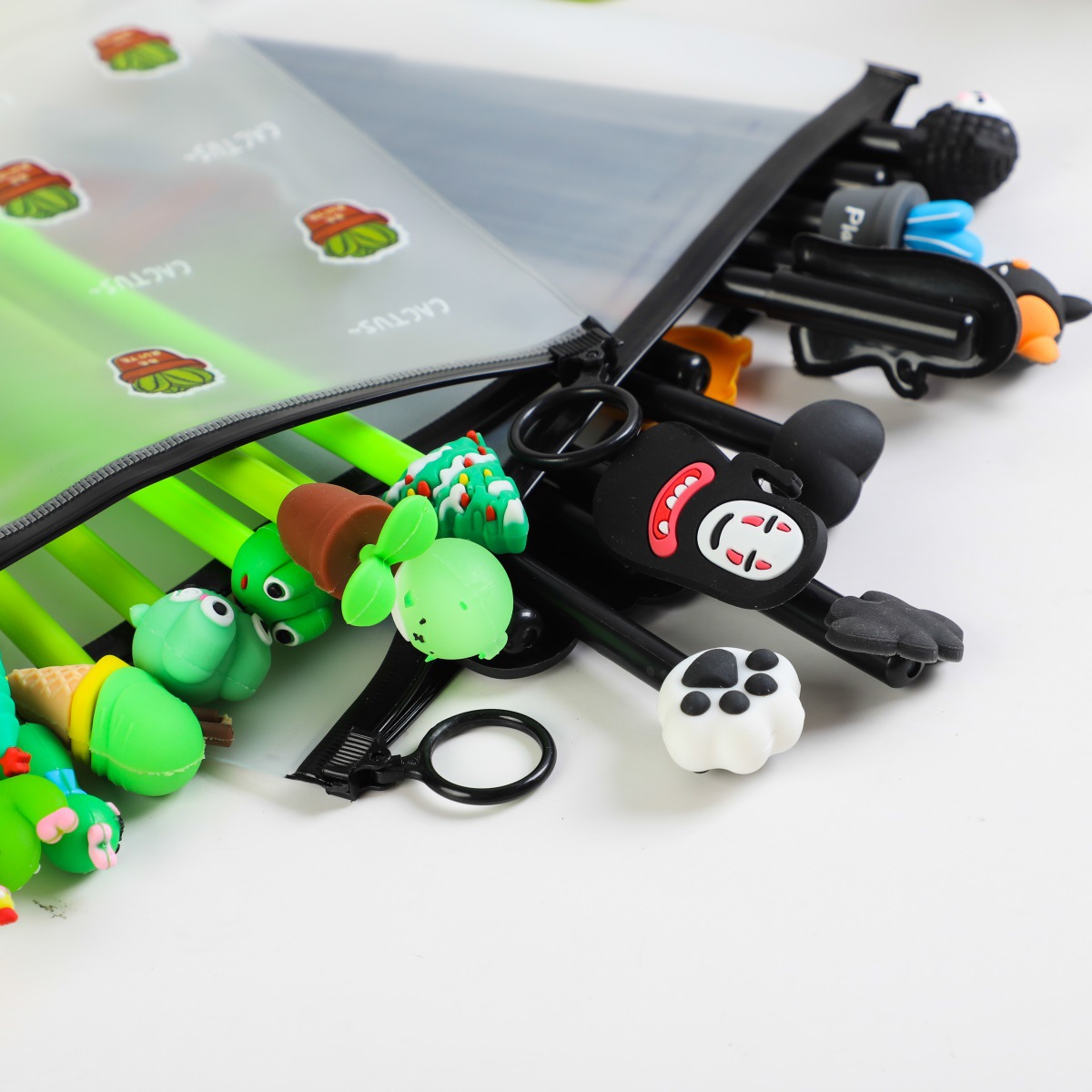 Combo 10 bút bi hình cute dễ thương xanh lá Bộ sản phẩm gồm 10 bút hình khác nhau, cực kỳ dễ thương và ngộ nghĩnh, tặng kèm 1 túi zip chống nước tiện dụng