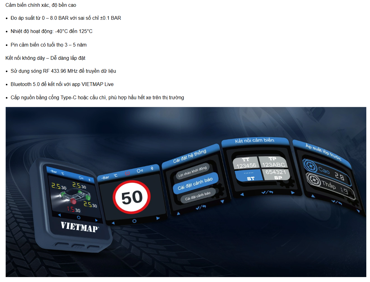 ✨Bộ cảm biến áp suất lốp cao cấp VIETMAP TW50 - Hàng chính hãng