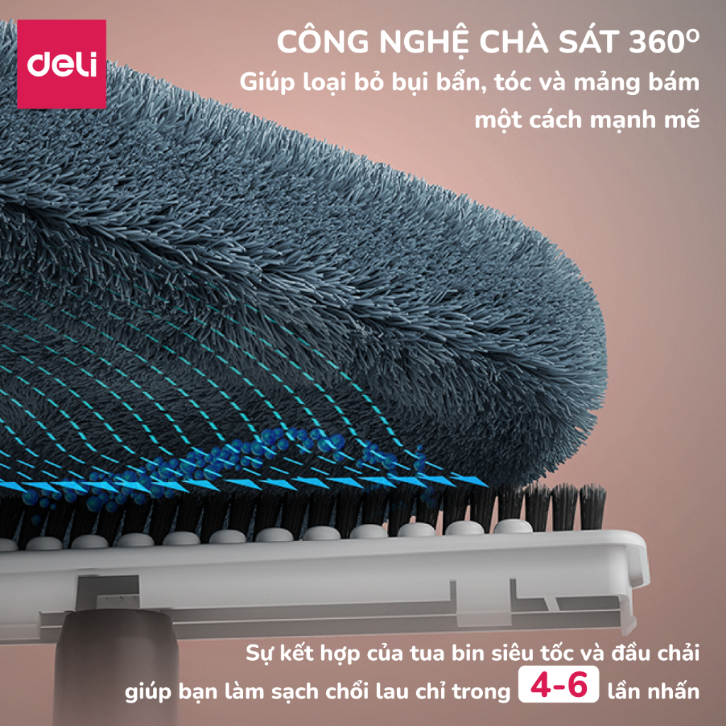 TÊN SẢN PHẨM: Bộ cây lau nhà thông minh tách nước bẩn Deli, chổi lau nhà xoay 360 độ 2 ngăn kèm bông lau