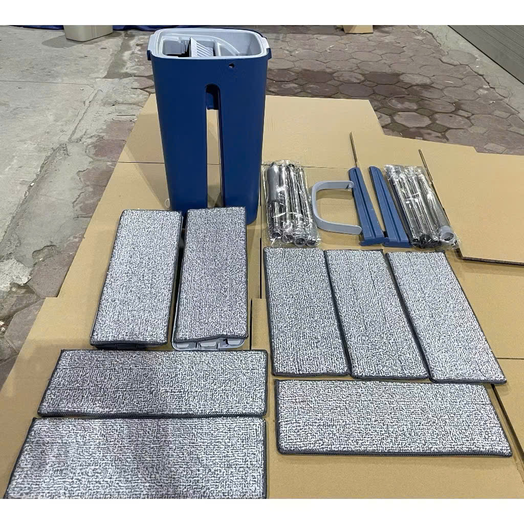 Bộ Cây Lau Nhà tự vắt (1 Thùng + 2 Cây Lau + 8 Bông Lau), Chổi Lau Nhà Tự Vắt Thông Minh Đầu Xoay 360 Độ tiện lợi Bộ cây lau nhà tự vắt