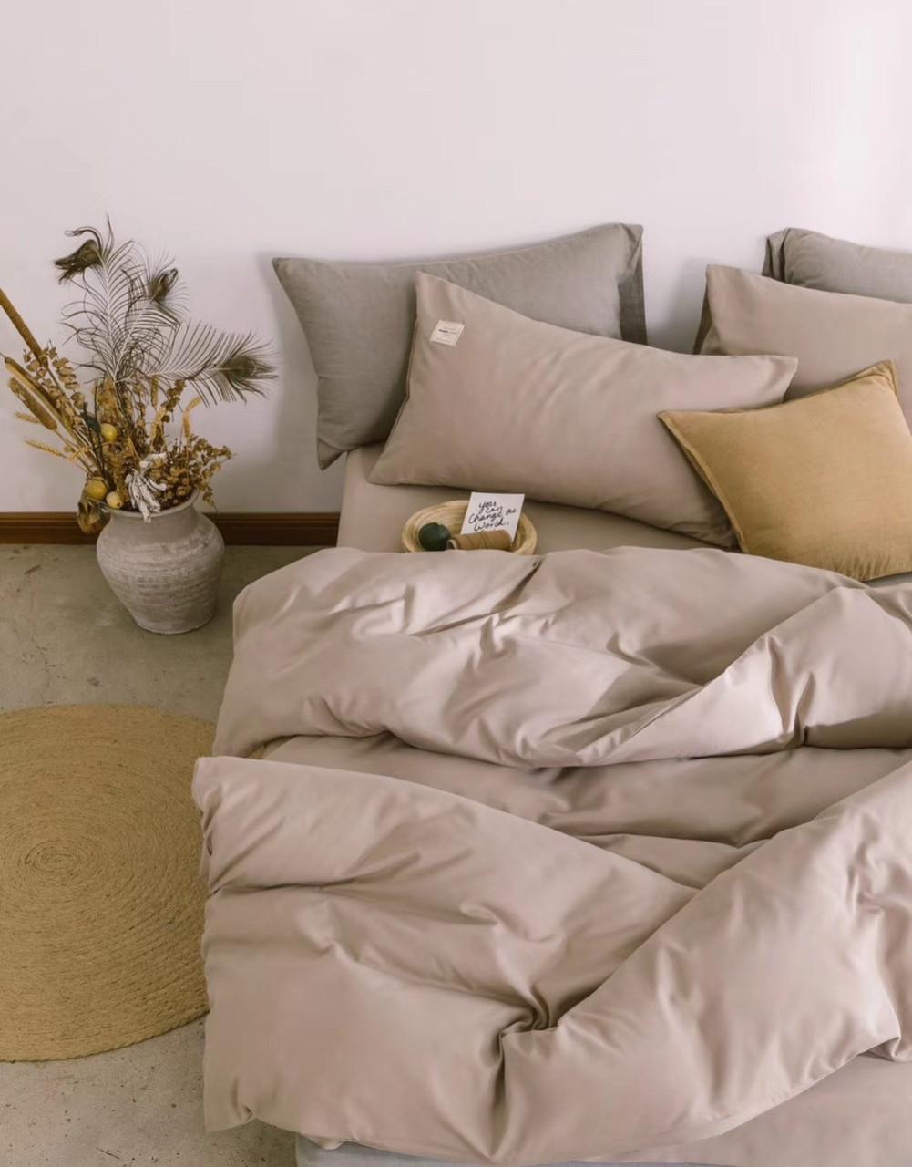 ✨Bộ Chăn Ga Gối Cotton Tici Đơn Sắc LIDACO - Màu Be