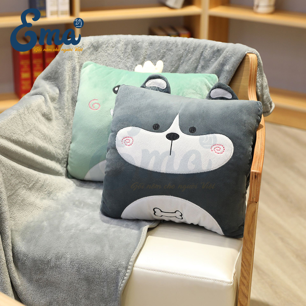 ✨Bộ chăn gối văn phòng 3 trong 1 hình thú dễ thương EMA kèm gối luồn tay giữ nhiệt - Tựa lưng - Ngủ trưa - Gối ôm