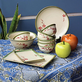 Bộ tô chén đĩa ăn gốm Bát Tràng men hoa đào là một trong những sản phẩm được yêu chuộng vì nét vẽ tỉ mĩ, tinh tế và mang phong cách hoài cổ xen lẫn, góp phần làm cho món ăn thật ngon hơn và buổi cơm gia đình ấm cúng hơn với bộ chén đĩa gốm.