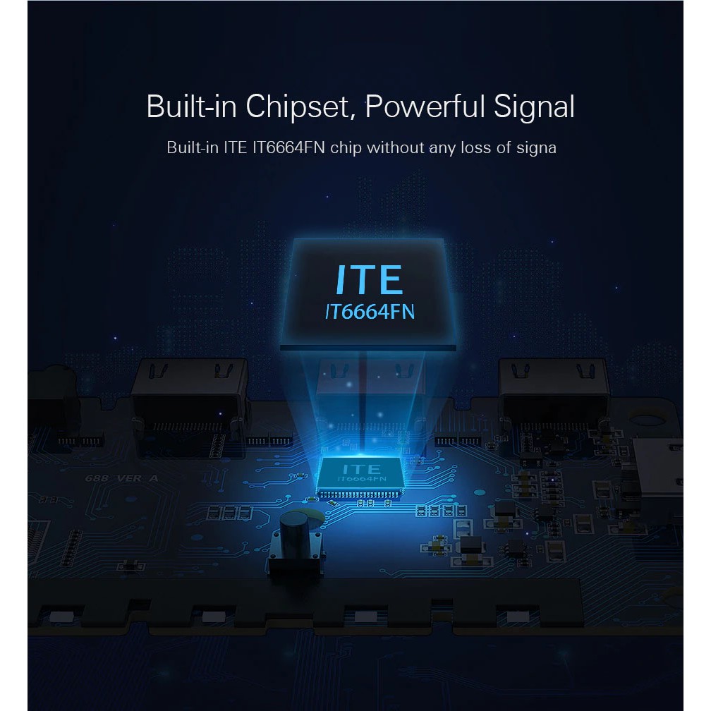 - Ugreen 40202 chia từ 1 cổng HDMI ra 4 cổng HDMI khác đầu ra Full HD 1080p cho độ nét cao.