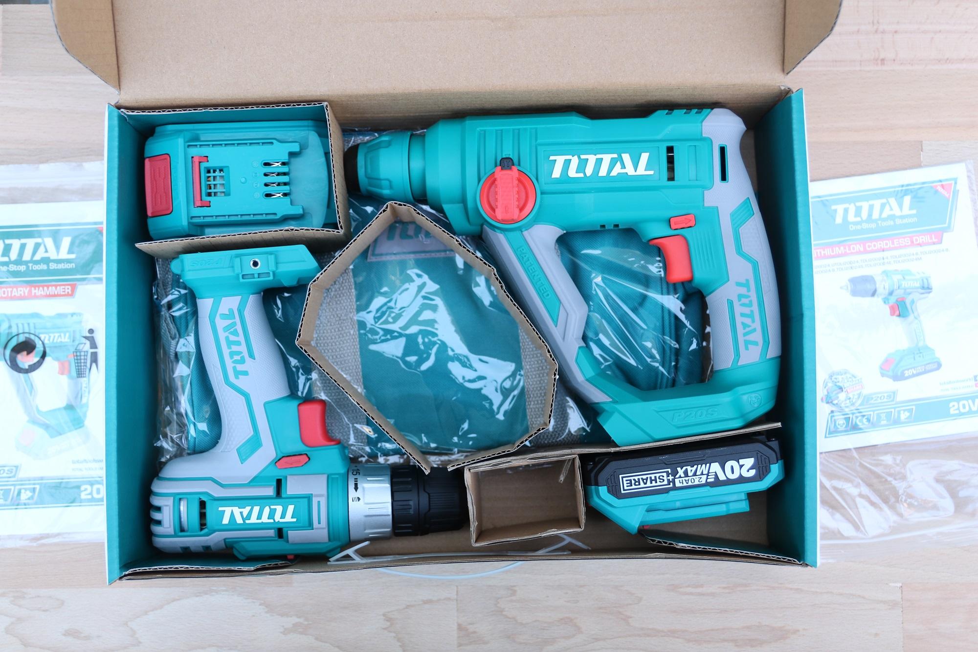 ✨BỘ COMBO MÁY KHOAN ĐỘNG LỰC VÀ MÁY KHOAN DÙNG PIN 20V (2PIN 2AH, 1 SẠC) TOTAL TCKLI2008 - HÀNG CHÍNH HÃNG