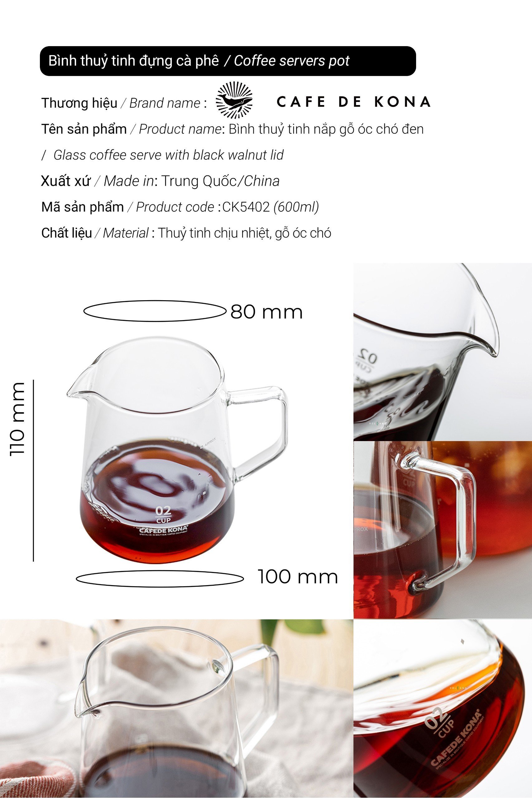 BỘ COMBO PHA CÀ PHÊ V60 02 HIỆN ĐẠI CAFE DE KONA - Sản xuất tại: Trung Quốc -Thương hiệu: CAFE DE KONA *Combo 2 món (CO5021) gồm: 1 Bình thủy tinh - 600ml