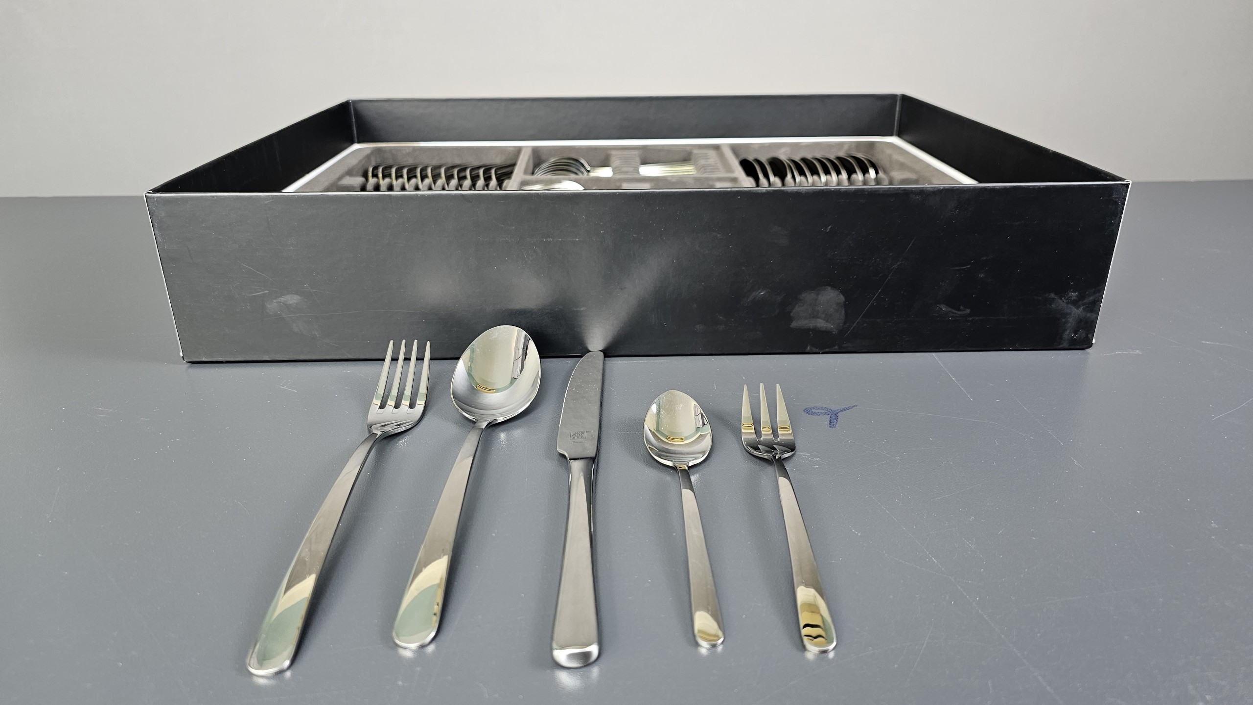 Set dao thìa dĩa Zwilling King 30 món cho 6 người (dáng thon, mảnh tinh tế) Zwilling là sản phẩm lao động nghệ thuật của nhà kiến trúc sư và thiết kế người Mailand -