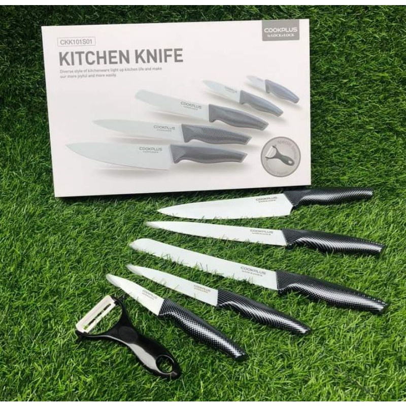 Bộ 5 dao phủ sứ Lock&lock Hàn Quốc Cookplus CKK101S01 (Tặng dụng cụ gọt củ quả)