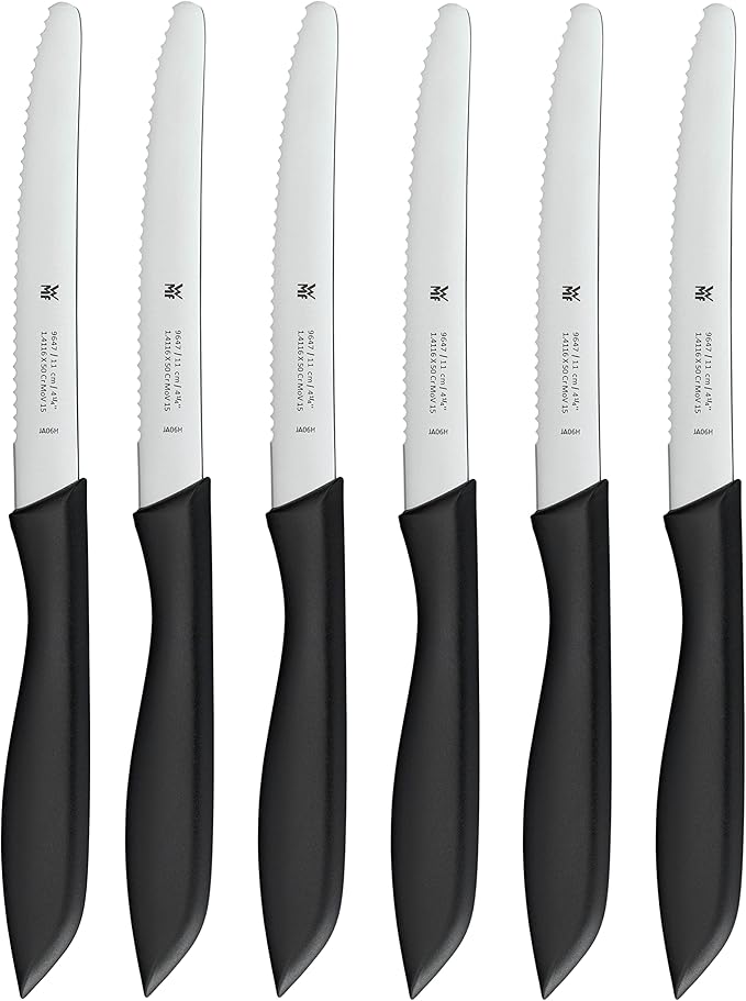Hãy tưởng tượng: Bạn có thể dễ dàng thái thịt, cắt bánh mì, gọt trái cây, thái rau củ,… với 6 loại dao chuyên dụng, mỗi loại đều được thiết kế sắc bén và bền bỉ. Không còn phải mất thời gian và công sức để tìm kiếm những loại dao phù hợp, không còn phải lo lắng về việc dao bị cùn, bạn có thể tận hưởng sự tiện lợi và hiệu quả của bộ dao WMF mỗi ngày.