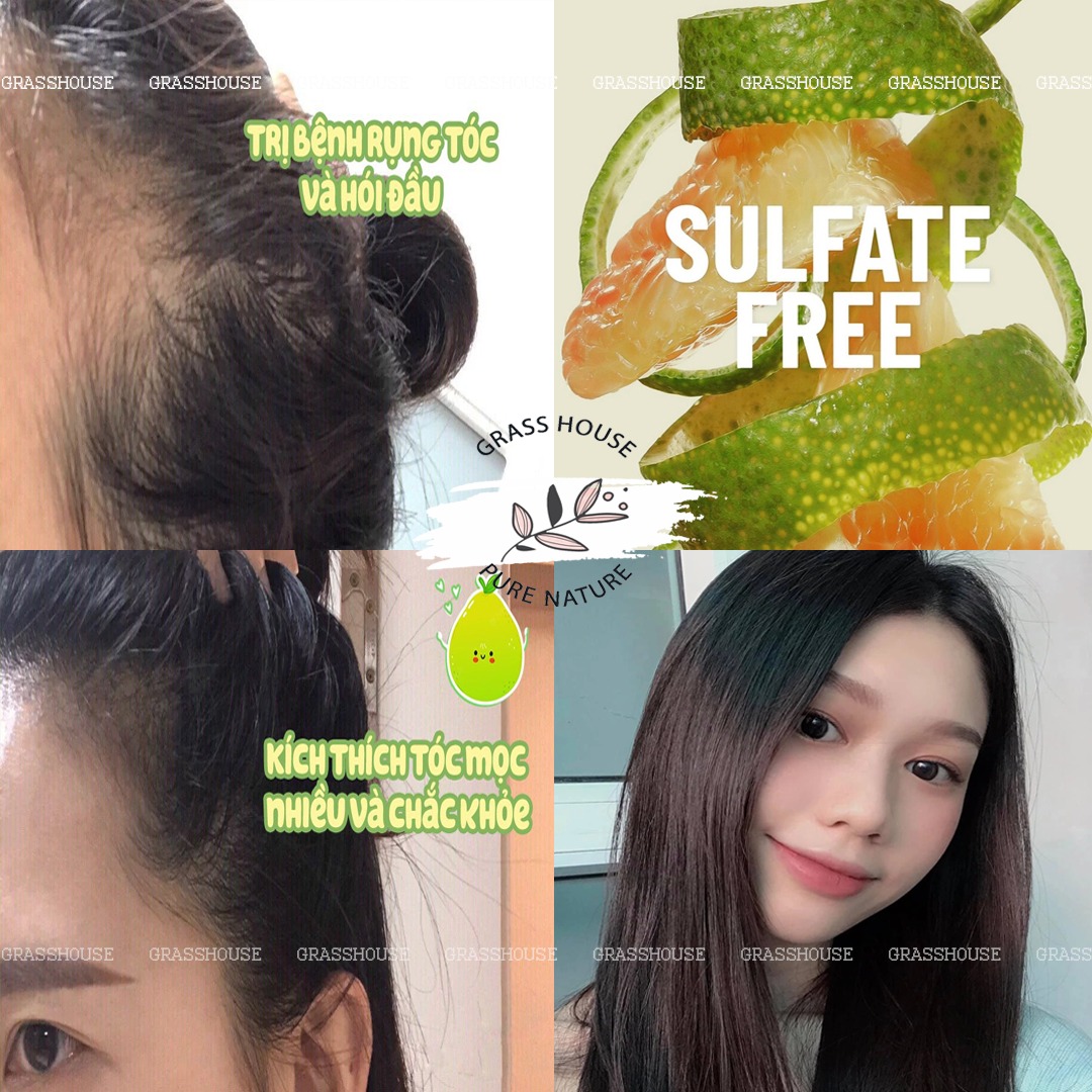 MÔ TẢ SẢN PHẨM: - Chiết xuất Bưởi từ thiên nhiên có công dụng nuôi dưỡng và kích thích móc tóc, giúp tóc óng mượt chiết xuất Cây Phỉ, dầu MùU có khả năng điều