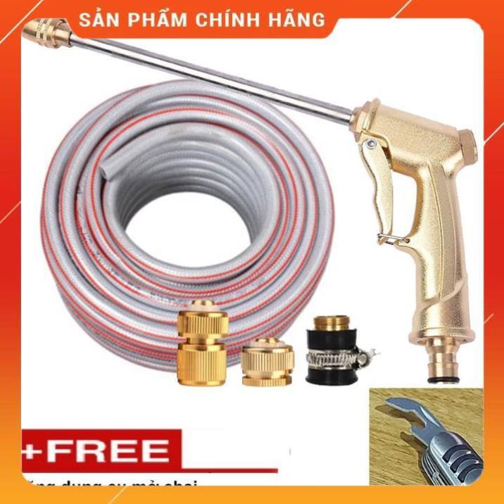 ✨Bộ dây vòi xịt nước ️ , tăng áp 3 lần, loại 7m, 10m 206701-3 đầu đồng, cút đồng, + mở chai