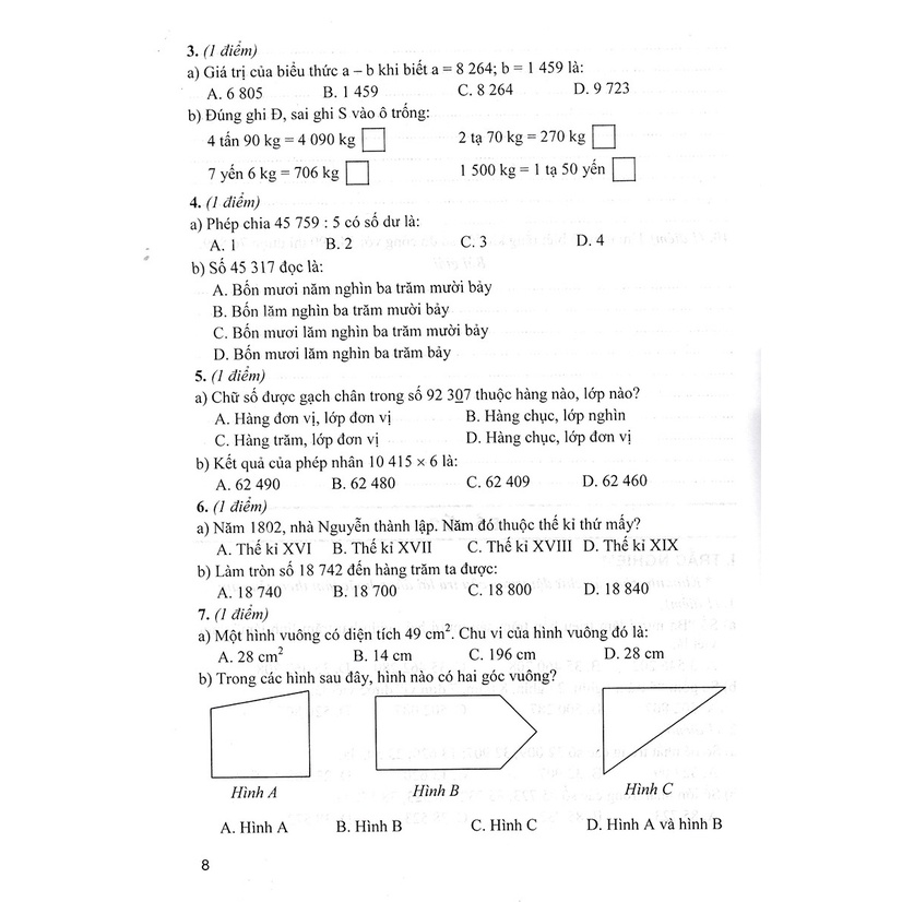 BỘ ĐỀ KIỂM TRA MÔN TOÁN LỚP 4 - TẬP 1