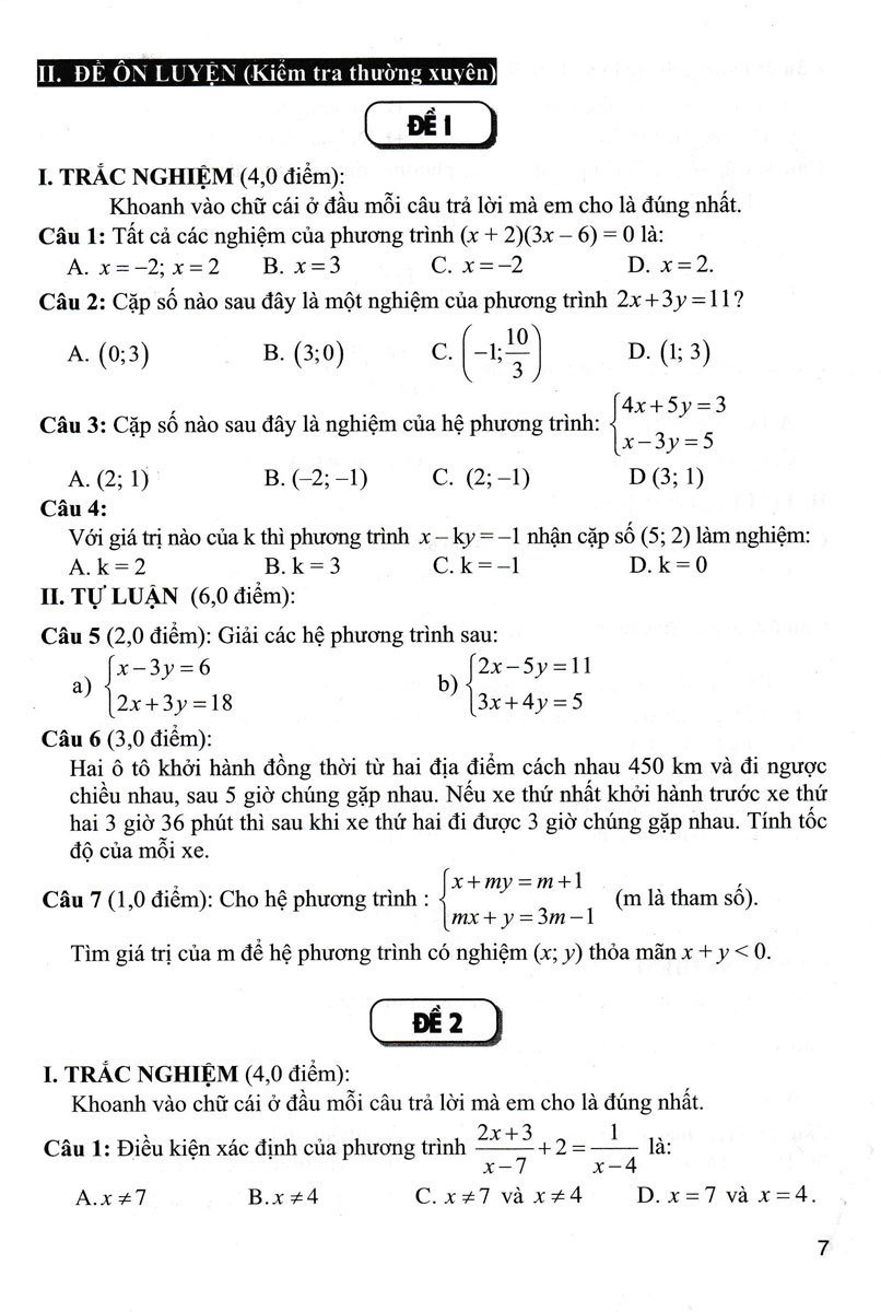 Bộ Đề Kiểm Tra Toán 9 (Bám Sát SGK Chân Trời Sáng Tạo) Sau một năm thực hiện Chương trình Giáo dục phổ thông mới, với phương châm là vừa giúp học sinh phát triển phẩm chất và năng lực vừa phải mở mang kiến thức vừa phải rèn luyện kĩ năng, quý Thầy Cô và các em học sinh đã từng bước tiếp cận nội dung và phương pháp mới. Đồng hành cùng quý thầy cô và các em học sinh, tác giả tiếp tục biên soạn cuốn sách “Bộ đề kiểm tra toán 9” với hy vọng sẽ là tài liệu tham khảo thiết thực cho quý thầy cô và các em học sinh rèn luyện năng lực theo hướng phát triển. Cuốn sách có nội dung bám sát bộ sách giáo khoa “Chân trời sáng tạo” của Nhà xuất bản Giáo dục Việt Nam. Ngoài ra quý phụ huynh có thể sử dụng cuốn sách làm tài liệu tham khảo nhằm giúp con em mình học môn Toán tốt hơn. Cuốn sách được biên soạn theo từng bài học và chia làm 3 phần. – Phần 1: Kiến thức cơ bản và các đề kiểm tra thường xuyên. − Phần 2: Các đề kiểm tra giữa kì 1, 2 và có hướng dẫn giải. − Phần 3: Các đề kiểm tra cuối kì 1, 2 và có hướng dẫn giải. Trong quá trình biên soạn, cuốn sách chắc chắn không tránh khỏi những thiếu sót nhất định. Tác giả rất mong nhận được ý kiến đóng góp chân thành của bạn đọc gần xa, đặc biệt là quý Thầy, Cô và các em học sinh thân yêu để cuốn sách ngày càng hoàn thiện hơn trong lần tái bản tiếp theo.