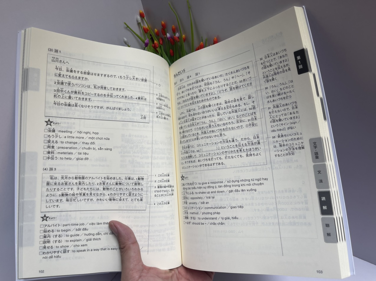 Mua tại Tiktok- Bao gồm 3 đề luyện thi Kỳ thi năng lực Nhật ngữ cấp độ N1 - N5. Giải 3 bộ đề có hình thức hoàn toàn giống với kỳ thi thật, bạn đã trang bị cho mình nhiều kiến thức để thử thách trong kỳ thi chính thức.