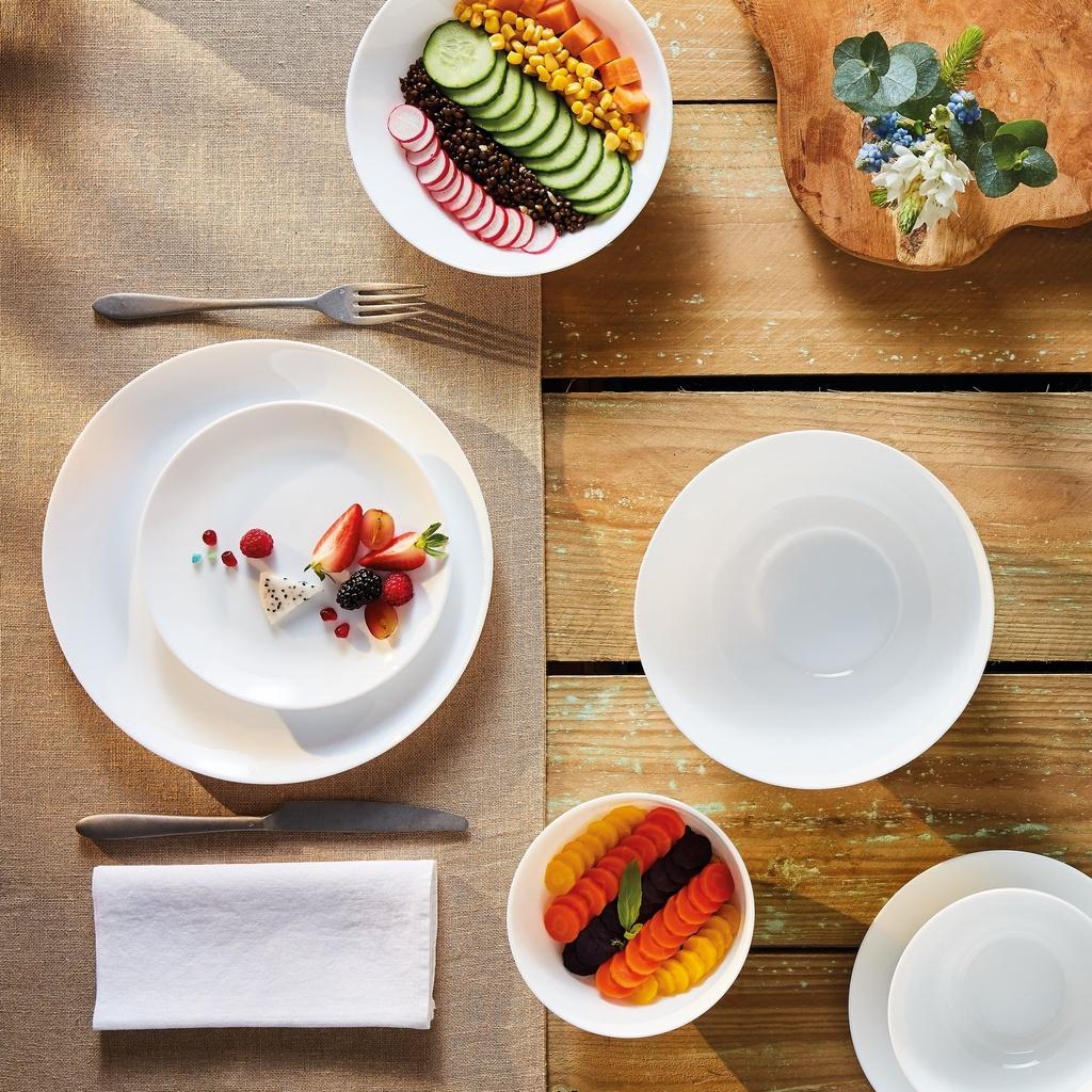 Bộ 12 đĩa Luminarc Diwali với màu trắng tinh khiết, thiết kế theo phong cách truyền thống với kiểu dáng tròn và trơn nhưng không kém sang trọng và tinh tế. Với dòng sản phẩm này, phòng ăn nhà bạn sẽ trở nên trang nhã mà không kém phần tươi mới.