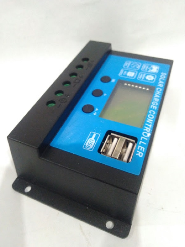 Mua tại TiktokBộ điều khiển sạc pin năng lượng mặt trời 12 - 24V Bộ điều khiển sạc pin năng lượng mặt trời 30A được sử dụng để kiểm soát quá trình sạc ắc quy từ pin năng lượng mặt trời, giúp quá trình sạc pin với hiệu suất cao. Bộ điều khiển sạc pin mặt trời có kích thước nhỏ gọn 150x78x35mm, có lớp vỏ bảo vệ có độ bền cao, với 2 cổng USB ra, sử dụng điện áp 12-24V Thông số kỹ thuật của bộ điều khiển sạc pin mặt trời: