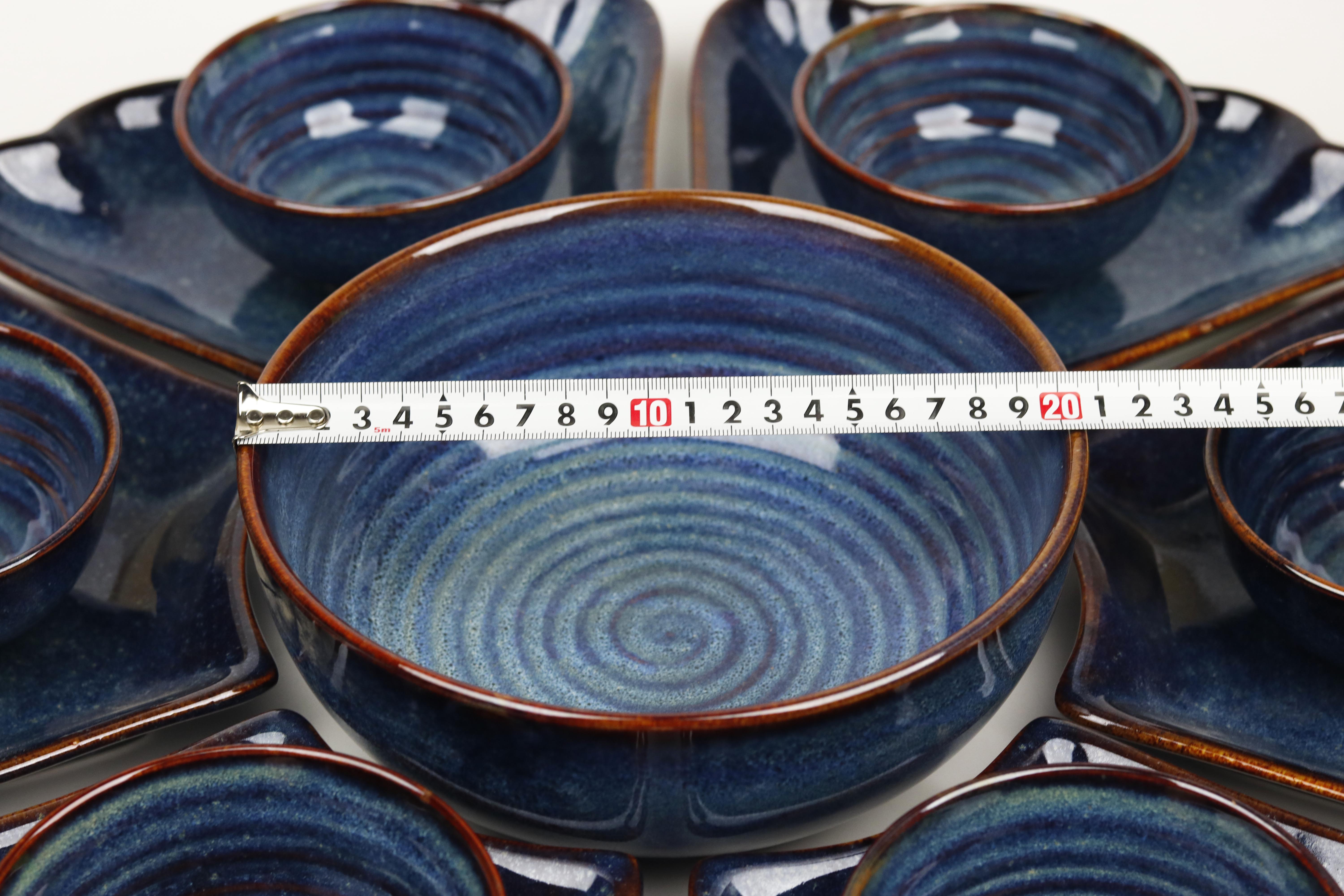 ✨Bộ đồ ăn hoa mặt trời Bát Tràng men hỏa biến cao cấp - Cúng rằm/lễ/tết/chay/mặn/bày cỗ/tiếp khách-Xanh đá biển-55cm