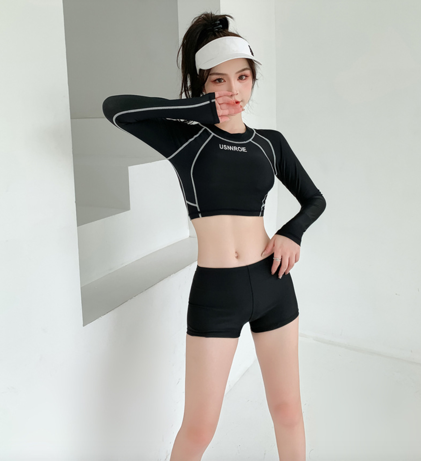 Set Đồ Bơi Nữ Rời Đùi Dài Tay Đi Biển Đi Bơi Chất liệu Polyester 95%, mật độ dệt vừa Áo có sẵn lớp đệm, hông áo có thể rút lên làm croptop cá tính