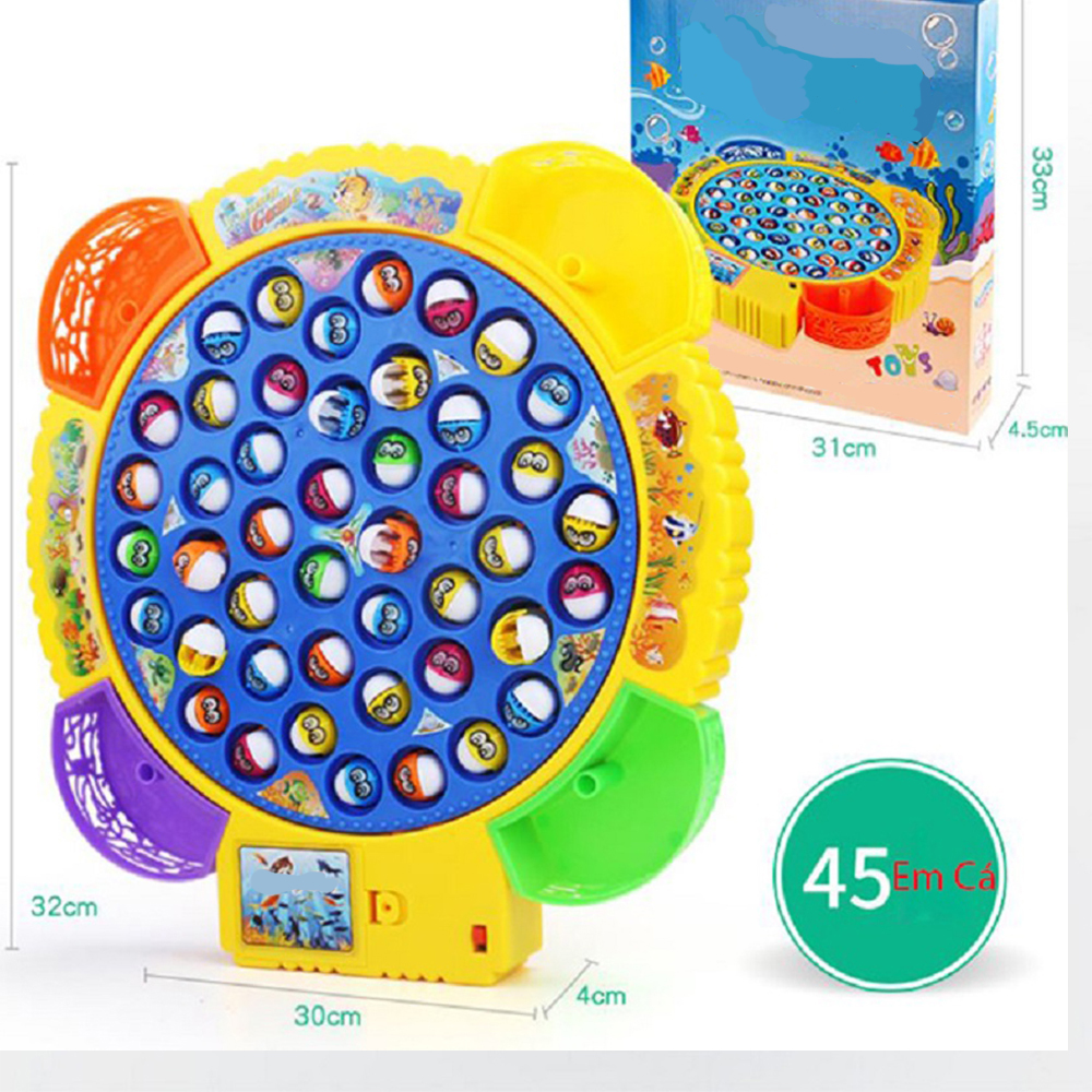 Bộ Đồ Chơi Câu Cá 45 Con Cá Phát Nhạc Tặng Kèm 4 Cần Câu Chất Liệu Nhựa Không Độc Hại Dành Cho Bé  Đây là món quà lý tưởng, Bộ Đồ Chơi Câu Cá hấp dẫn dành tặng cho bé yêu, hỗ trợ kích thích hoạt động tay chân và giúp phát triển trí tuệ, óc sáng tạo và khả năng phản xạ khéo léo cho bé. Đồ chơi là một sản phẩm đồ chơi giúp cho bé cảm nhận được những trò chơi tuổi thơ thật vui nhộn và nhiều bổ ích. Với những chú cá đầy màu sắc, sự đảm bảo khi câu sẽ mang cho bé được những đặc điểm đặc biệt từ những đồ chơi như các đồ chơi nghề nghiệp đảm bảo hơn cho sự phát triển của bé. Đồ chơi câu cá không chỉ là một trò chơi tái hiện được sự thực hằng ngày mà còn giúp bé có được những nhận thức khác biệt và đảm bảo. Câu cá một trò không những trẻ con mà người lớn cũng thích bởi những điều kiện được đảm bảo nhất. Qua việc chơi câu cá bạn sẽ rèn luyện được tính khéo léo, tính đảm bảo của trẻ. Đồ chơi câu cá có nhiều loại như: bộ đồ chơi câu cá dưới nước, đồ chơi câu cá nam châm, đồ chơi câu cá bằng pin có thể phát nhạđảm bảo được những tiêu chuẩn và sự hợp lý nhất cho trẻ. -  Bộ Đồ Chơi Câu Cá thử thách giúp trẻ phát triển sự khéo léo, nhanh tay nhanh mắt, kiên trì khi làm việc