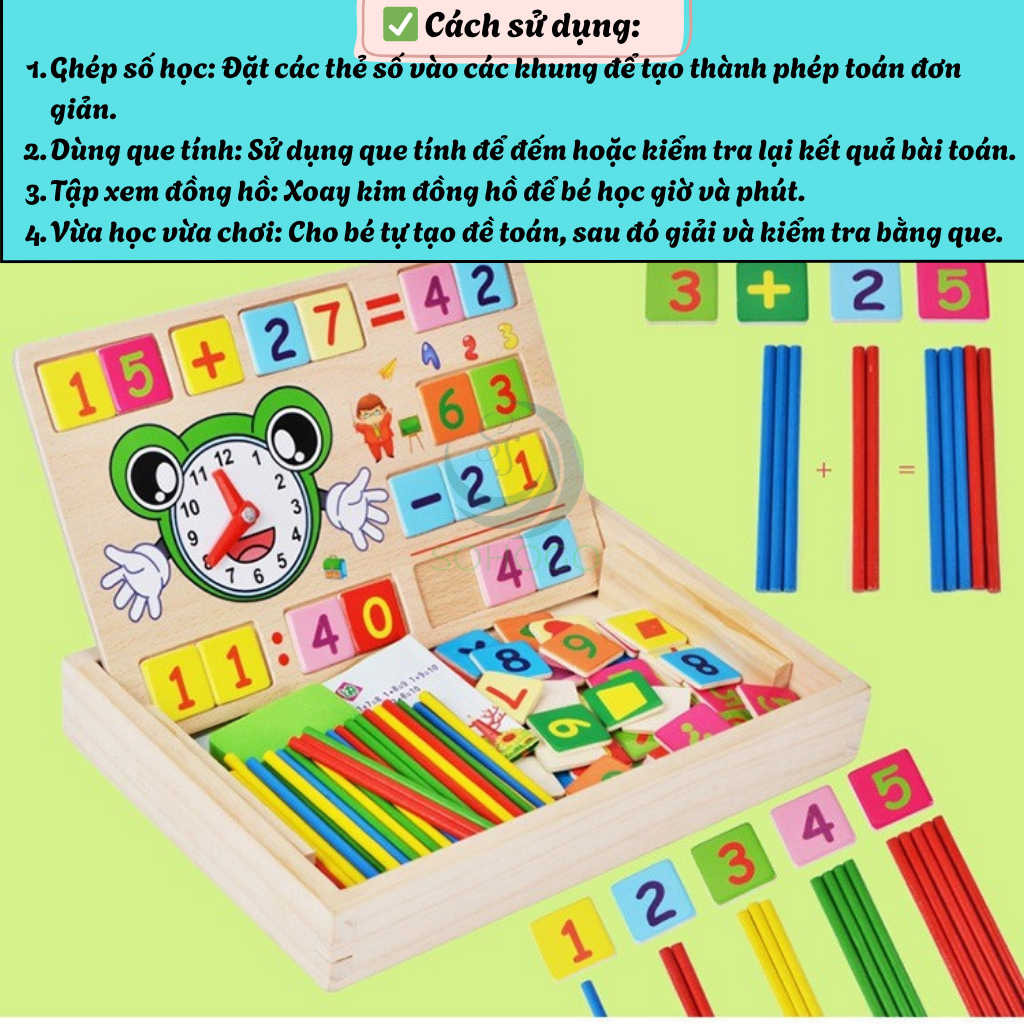 ✨Bộ Đồ Chơi Học Toán Thông Minh Kèm Đồng Hồ Cho Bé- Hộp Đồ Chơi Gỗ Giáo Dục – Học Số, Phép Tính và Thời Gian- Bộ Lắp Ghép Số Toán Học Kèm Đồng Hồ Gỗ Cho Trẻ- Bộ Học Toán Tư Duy Montessori Cho Bé- Bộ Đồ Chơi Gỗ Toán Học & Nhận Biết Giờ Giấc