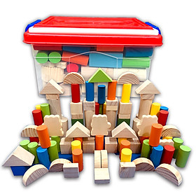 Bộ Đồ Chơi Xếp Hình Khối Bằng Gỗ - 100 Chi Tiết Bằng Gỗ Bé Thông Minh - Giáo Cụ Montessori Trẻ Em