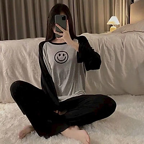 ✨Bộ đồ ngủ cotton tay dài quần dài 125 mặt cười năng động