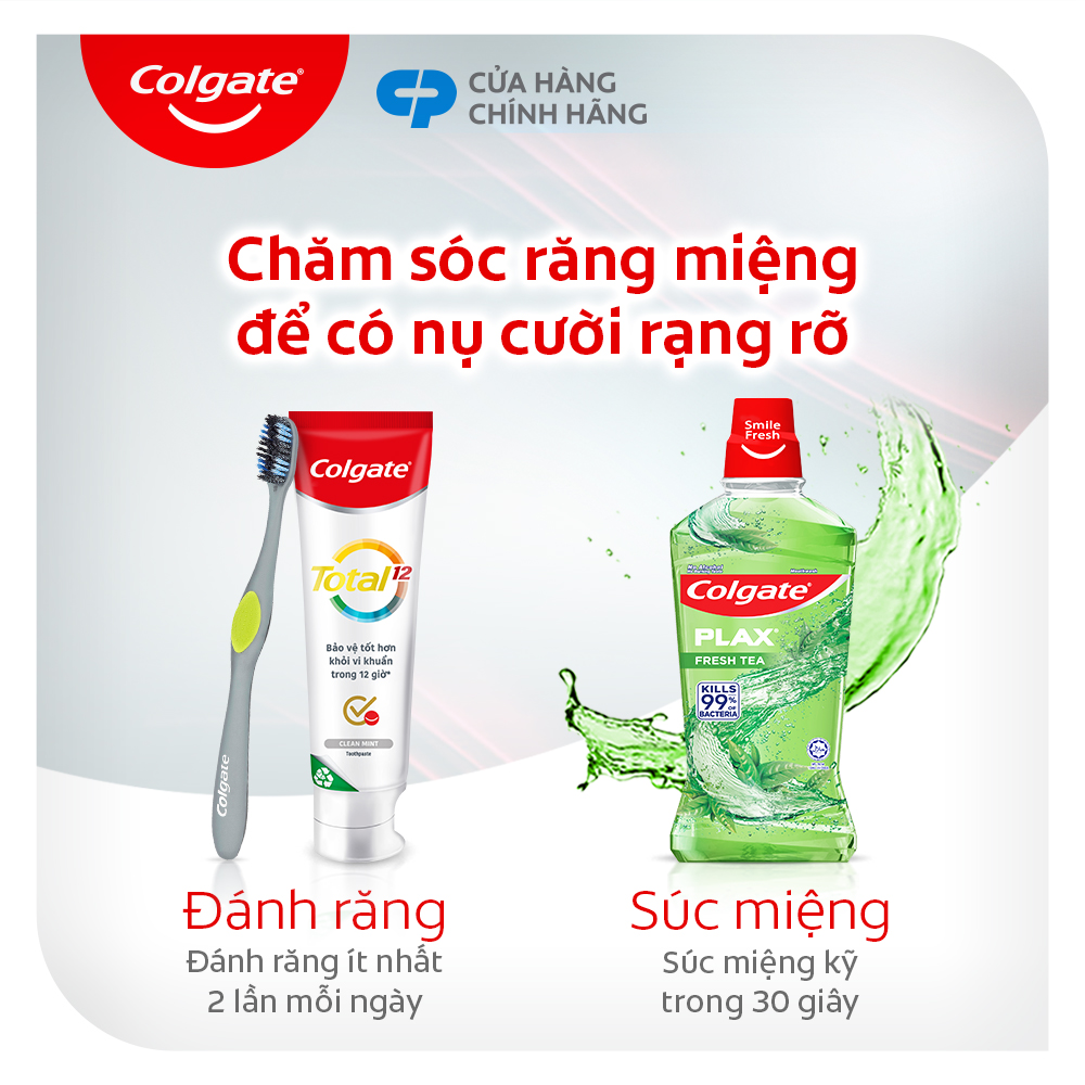 - Chải mặt lưỡi: đừng quên chải mặt lưỡi của bạn. ** Nên kết hợp bàn chải Colgate với kem đánh răng Colgate và nước súc miệng Colgate Plax để bảo vệ răng miệng toàn diện hơn. Thông tin thương hiệu COLGATE-PALMOLIVE - THƯƠNG HIỆU CHĂM SÓC RĂNG MIỆNG HÀNG ĐẦU ĐẾN TỪ MỸ Thành lập từ năm 1806, Colgate-Palmolive là thương hiệu lâu đời nổi tiếng với các sản phẩm chăm sóc răng miệng, chăm sóc tóc và chăm sóc cơ thể dành cho cá nhân và gia đình được cả thế giới tin dùng trong nhiều thập kỷ qua. Công ty luôn luôn nghiên cứu đổi mới, phát triển và cho ra đời nhiều dòng sản phẩm để phục vụ tốt hơn nhu cầu của người tiêu dùng. Hiện nay, Colgate-Palmolive đã trở thành thương hiệu chăm sóc sức khỏe răng miệng hàng đầu tại Mỹ và nhiều quốc gia khác. Ra mắt tại Việt Nam từ năm 1998, Colgate-Palmolive Việt Nam đang phân phối đa dạng các dòng sản phẩm bàn chải đánh răng Colgate, kem đánh răng Colgate, nước súc miệng Colgate Plax diệt khuẩn, sữa tắm Palmolive và dầu gội Palmolive. Với xu hướng sản phẩm có nguồn gốc từ thiên nhiên, an toàn, diệt khuẩn,... chăm sóc và bảo vệ toàn diện sức khỏe gia đình, Colgate-Palmolive đã và đang chinh phục trái tim của nhiều gia đình hiện đại. Colgate - Thương hiệu kem đánh răng hàng đầu đến từ Mỹ. Palmolive - Thương hiệu hiệu chăm sóc cơ thể hàng đầu tại Úc.