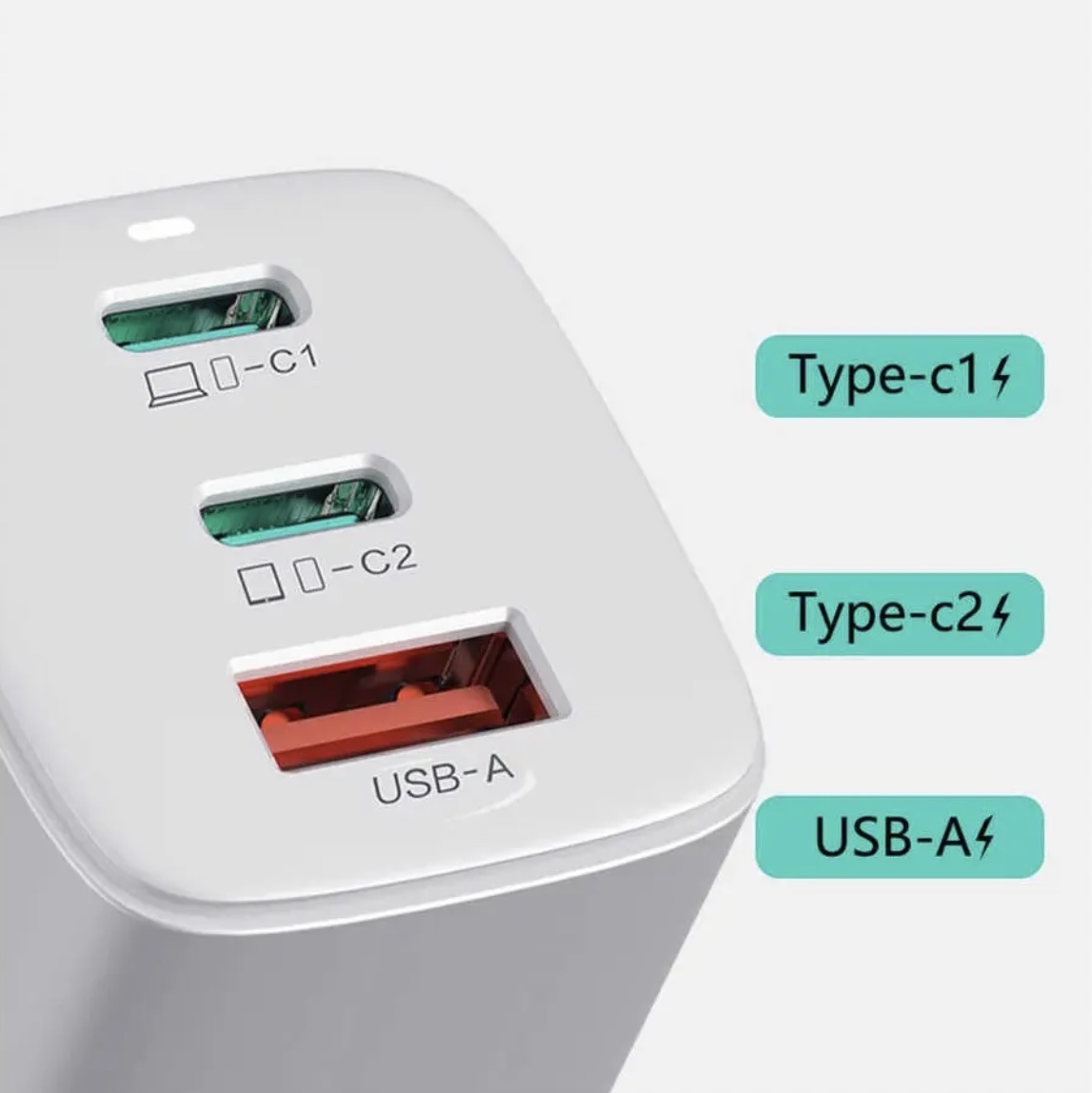 Mua tại TiktokBộ đổi nguồn Wiwu Gan Tech GTC6521-65W 2 đầu ra PD 1 đầu ra USB Hỗ trợ sạc nhanh QC 3.0 Chất liệu nhựa PC chống cháy chất lượng Công suất hiện tại tối đa 5A Thiết kế tiện dụng và phong cách 6 công nghệ bảo vệ khác nhau Bảo vệ quá áp Bảo vệ ngắn mạch Bảo vệ quá tải Bảo vệ quá dòng bảo vệ nhiệt độ Bảo vệ quá mức Thông số kỹ thuật Tiêu chuẩn: GB4943.1-2011 Đầu vào: AC100-240V-50 / 60Hz, Tối đa 1.5A Đầu ra Usb: 4.5V = 5A, 5V = 4.5A, 9V = 3A, 12V = 2.5A, 20V = 1.5A 30W mAX Đầu ra Type-C 1: 5V = 3A, 9V = 3A, 12V = 3A, 15V = 3A, 20V = 3,25A 65W Tối đa Đầu ra Type-C2: 5V = 3A, 9V = 3A, 12V = 2,5A, 15V = 2A, 20V = 1,5A 33W Tối đa