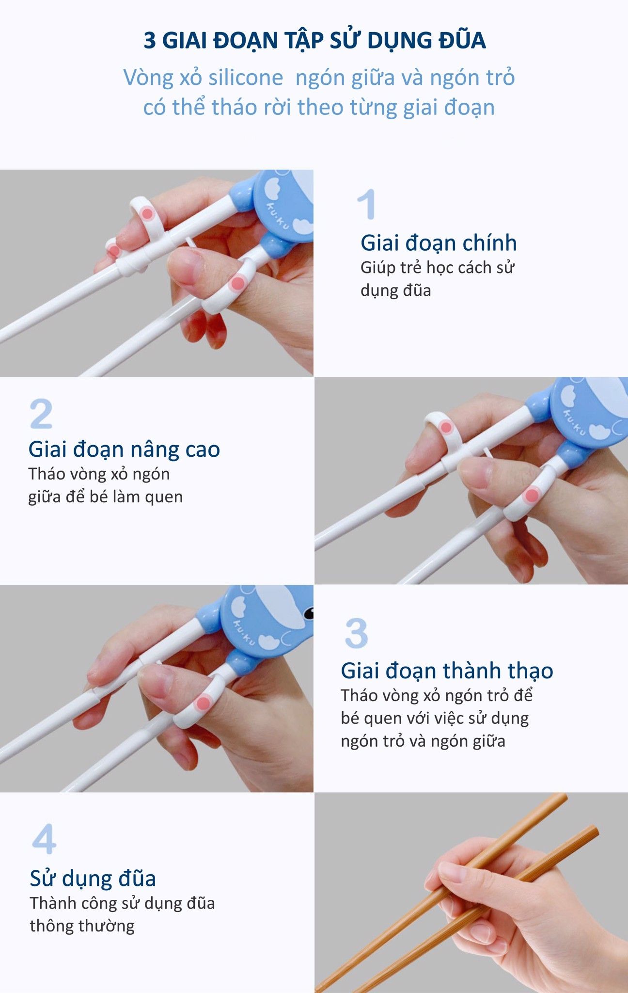 Đũa tập ăn xỏ ngón cho bé KUB, đũa ăn dặm tập gắp chắc chắn cho bé