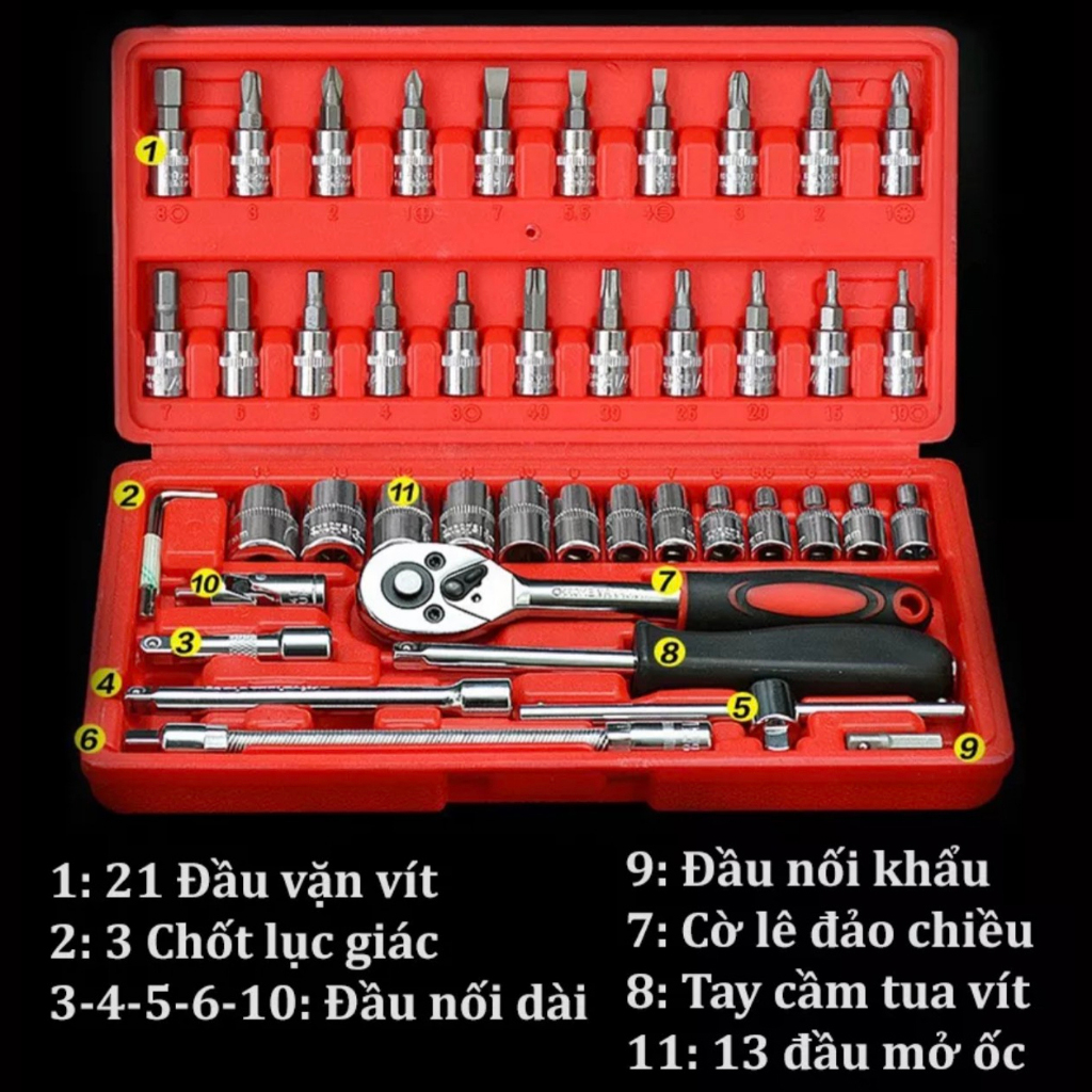 Bộ dụng cụ mở bu lông ốc vít, sửa chữa ô tô xe máy, đa năng 46 chi tiết, chất liệu thép CRV giá rẻ