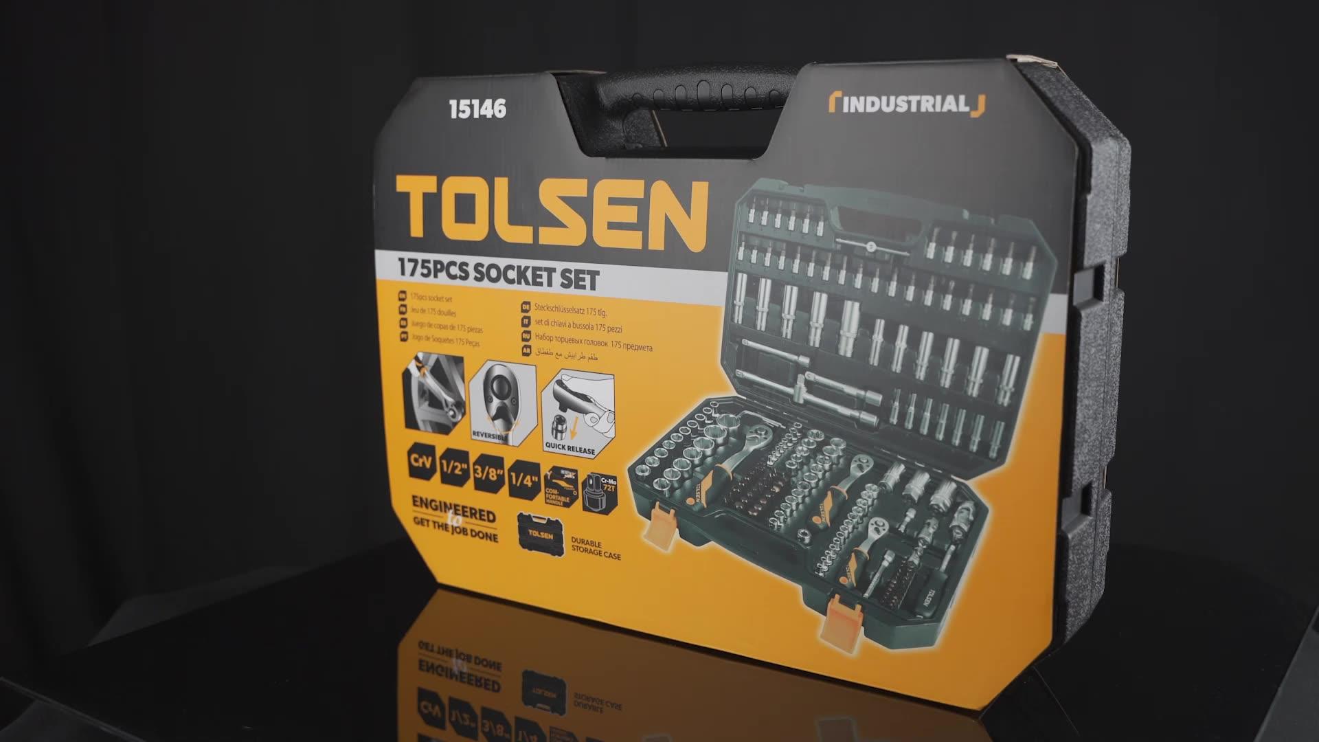 Bộ 17 ổ cắm 1/2" Bao gồm: 12 ổ cắm Dr 1/2": 10-11-12-13-14-15-16-17-18-19-21-24mm 1 tay cầm ratchet tháo lắp nhanh 1/2" 72T 2 thanh nối dài Dr 1/2": 5"(125mm) & 10"(250mm) 1 ổ cắm bugi: