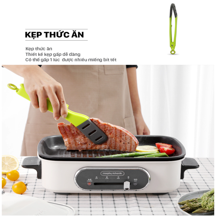 6 : Kẹp ( L285W25H58mm ) / Thiết kế góc kẹp rộng ( Tay cầm chắc chắn ) Sử dụng gắp , kẹp thực phẩm có kích thước và trọng lượng lớn như : Sườn nướng , bít tết