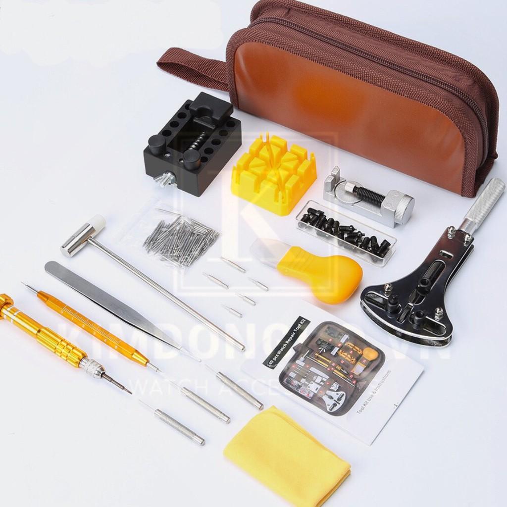 Bộ dụng cụ có túi bọc da, với 149 chi tiết tinh gọn chỉ trong 1 bộ, hỗ trợ hầu hết các thao tác tháo mở đồng hồ các loại (cắt mắt, thay dây, thay pin, tháo mở chi tiết, vệ sinh, bảo dưỡng, )