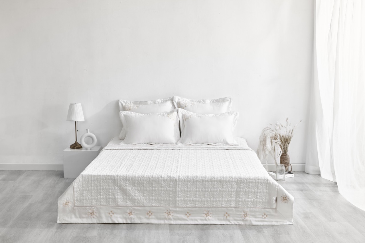 - Bạn sẽ cảm nhận sự mềm mại của loại vải Tencel từ lần chạm đầu tiên, mang đến cảm giác thoáng mát, nhẹ nhàng trong quá trình sử dụng. Những sợi vải mảnh mai được liên kết với nhau một cách chặt chẽ, giúp cho Tencel có độ bền cao gấp 2 lần so với Cotton thông thường. Cũng trên nền trắng là những chùm hoa trắng được thêu tay khá tỉ mẩn và chăm chút, không quá nổi bật nhưng đủ để ánh lên sự thanh lịch và sang trọng cho bộ sản phẩm cũng như không gian chứa đựng nó. Bộ sản phẩm sử dụng vải Tencel làm nguyên liệu hình thành. Bản thân Tencel là loại vải mang đậm dấu ấn của tự nhiên, được chiết xuất từ các loại cây giàu xenlulozo, thân xốp, nhiều sợi như khuynh diệp, bạch đàn, tre… nguyên liệu thành phẩm được xử lý nghiền thành bột và kéo sợi thông qua công nghệ Nano… tạo ra Tencel an toàn tuyệt đối cho sức khỏe người dùng, và thân thiện với môi trường sinh thái. Là màu được sử dụng khá rộng rãi trong thiết kế nội thất của phần lớn các gia đình. Màu trắng là màu của sự giản đơn, có thể phù hợp với nhiều không gian nội thất khác nhau, tạo thành một tổng thể hài hòa và cân đối.