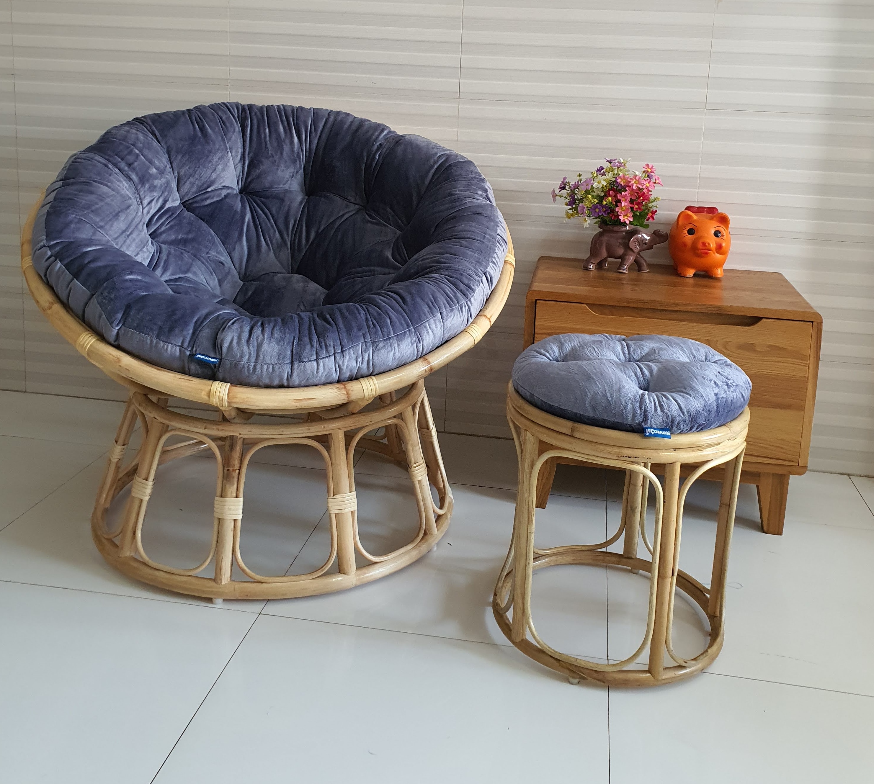 - Kích Thước : D 1m x cao 74cm - Chất liệu : + khung : mây song mật + nệm : gòn bi xuất khẩu bọc vải nhung Ghế thư giãn papasan phù hợp
