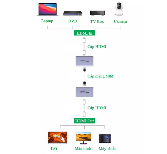 Bộ chuyển đổi HDMI 50m qua cáp mạng Cat5, Cat6 Ugreen 90811EU