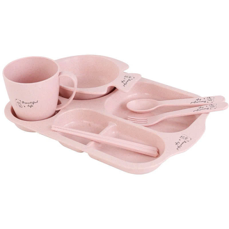 Bộ sản phẩm gồm 6 món: khay, bát, cốc, thìa, dĩa, đũa - đầy đủ những vật dụng cần thiết để bé tập ăn